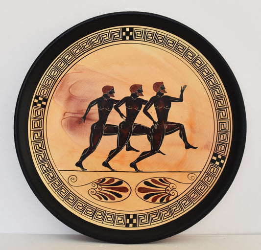 Athenian Runners in Ancient Olympic Games - Classic Period - 600 BC - Meander Motif - Ceramic plate - Handmade in Greece