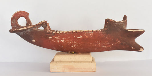 Terracotta Oil Lamp in the shape of a Ship - Ancient Greece - Museum Reproduction - Ceramic Artifact