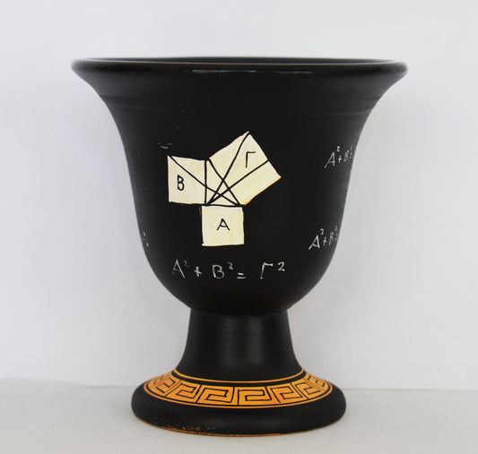 Pythagoras Cup - Fair Cup, Cup of Justice - Pythagoras Bust, Pythagoras' Theorem and Floral Design - Ceramic - Handmade in Greece