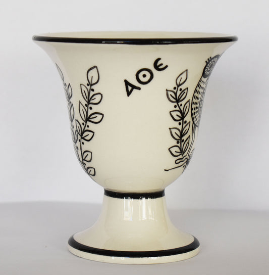 Pythagoras Cup - Fair Cup, Cup of Justice - Owl of Athena - Symbol of Knowledge, Wisdom, Perspicacity - Ceramic - Handmade in Greece