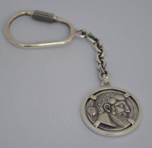Alexander The Great - Macedonian King - Son of Philip, Student of Aristoteles - Lysimachos Coin - Keychain - 925 Sterling Silver