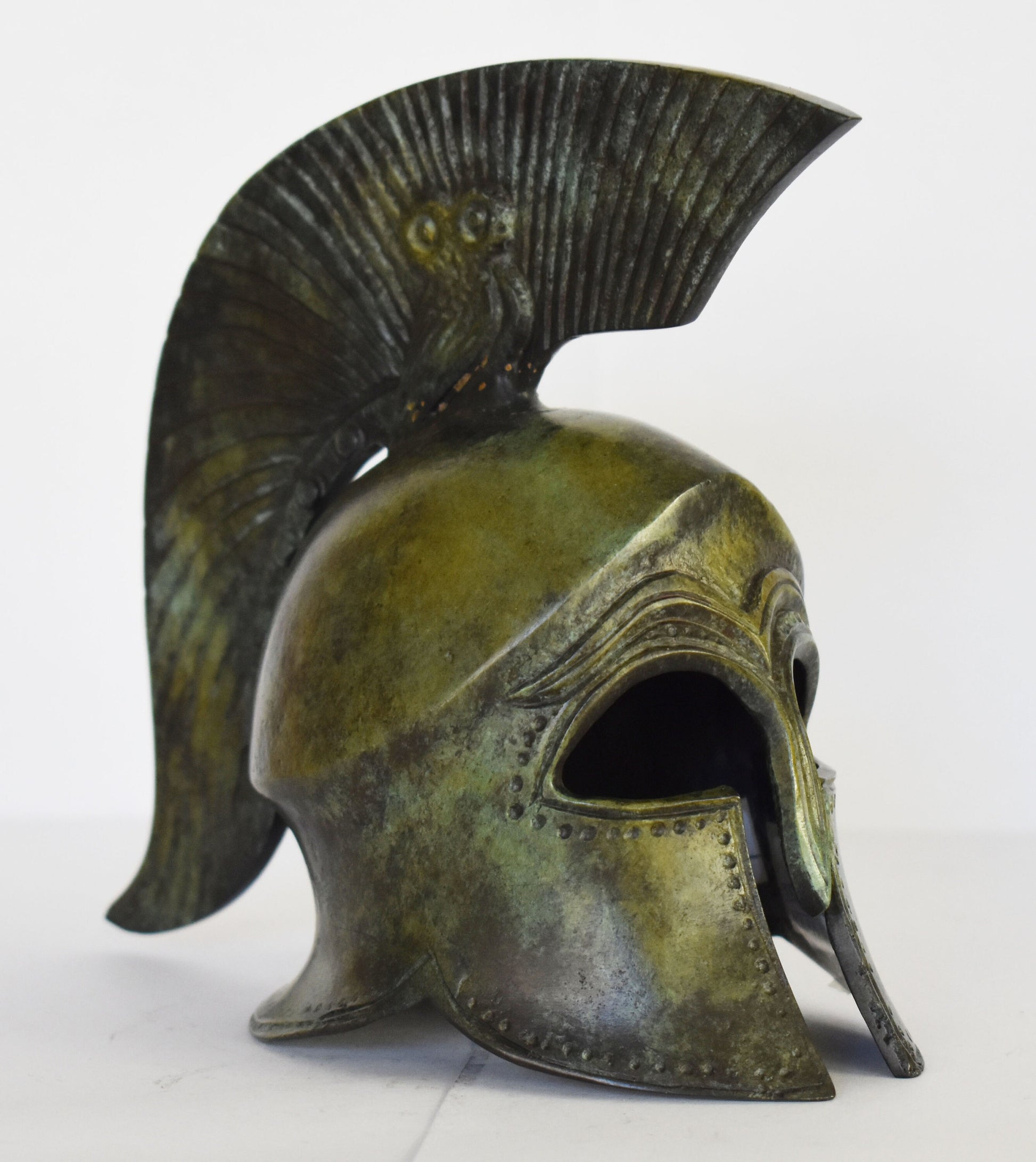 Ancient Greek Spartan Corinthian Helmet - Owl on the top - Pure Bronze Statue